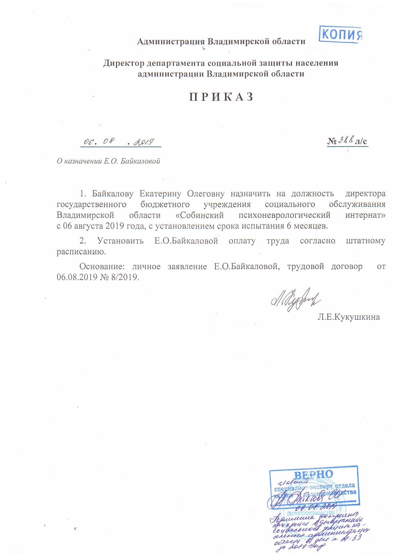 - Приказ назначении директора (копия)