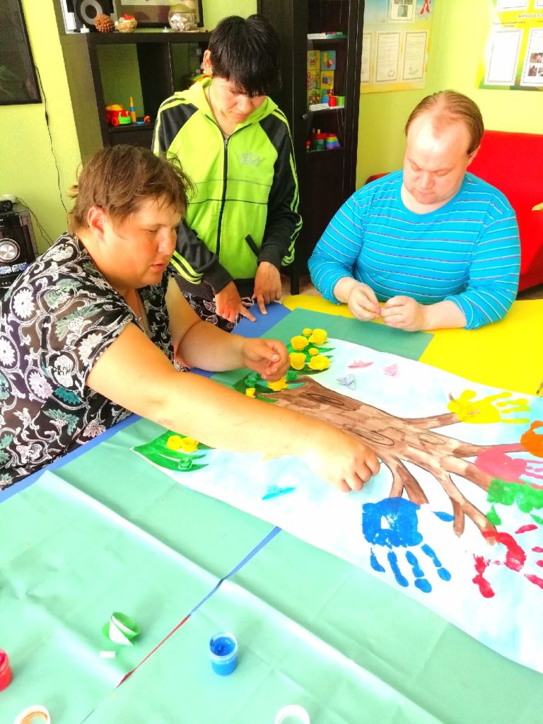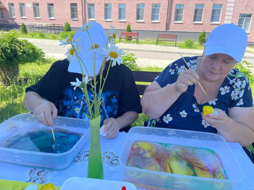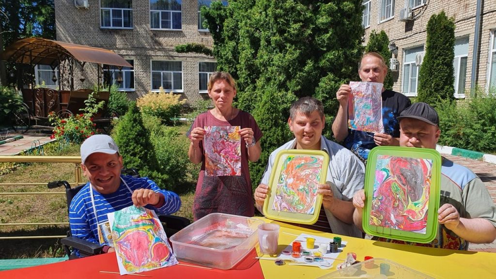 Творческая деятельность в «Акварельке» основана на использовании средств изобразительного искусства. В кружке создаются условия для развития эмоционального, эстетического, социального, интеллектуального потенциала клиентов. Воспитатель использует индивидуальный подход к каждому из клиентов. На занятиях предлагаются различные формы и методы рисования: гравюра, роспись по дереву, роспись по холсту, роспись по ткани, витраж, техника маркетри, декупаж, граттаж, изготовление картин из различных материалов, таких как фольга или кожа, раскрашивание изделий из керамики. Творческие работы участников кружка регулярно представляют наш интернат на различных выставках, конкурсах, как в стенах учреждения, так и за его пределами. Мастерство и творческие способности не раз были отмечены грамотами и призами различных конкурсов.
