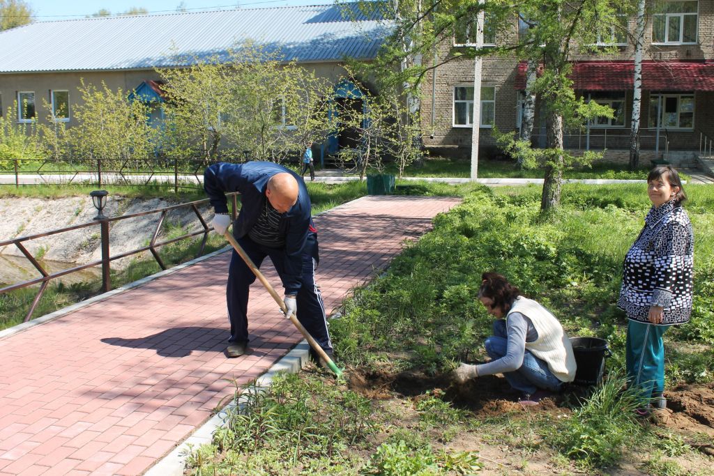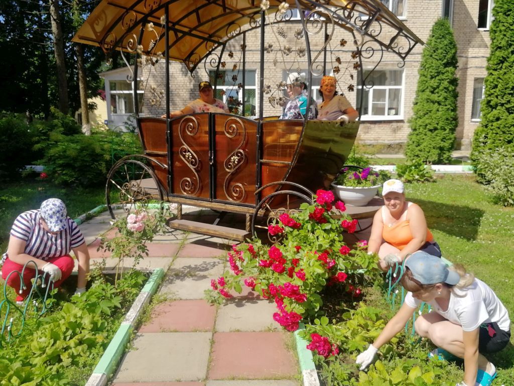 Работа бригады «Трудовой десант» направлена на организацию общественно – полезного труда на территории интерната (уборка территории, уход за насаждениями, работа на складах, транспортировка белья в прачечную)