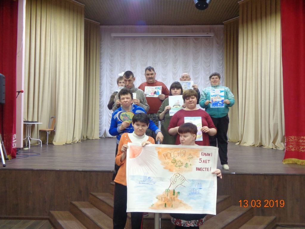 Ребята Собинского ПНИ присоединились к областной акции в честь 5-летия воссоединения Крыма и Севастополя с Россией. В культурной программе: