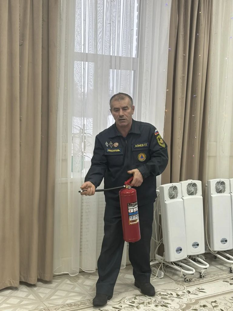 Также, специалист по ОТ и ТБ Горбунова Е.Ю. напомнила присутствующим о необходимости соблюдения правил пожарной безопасности, что особенно актуально в преддверии новогодних праздников. Алиев Г.Г. наглядно продемонстрировал присутствующим как правильно пользоваться огнетушителями и средствами индивидуальной защиты.