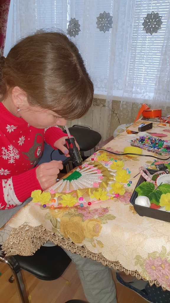 Любят в нашем интернате получатели социальных услуг вместе с инструкторами по трудотерапии делать подарки и оформлять интерьеры своих комнат и учебной кухни.