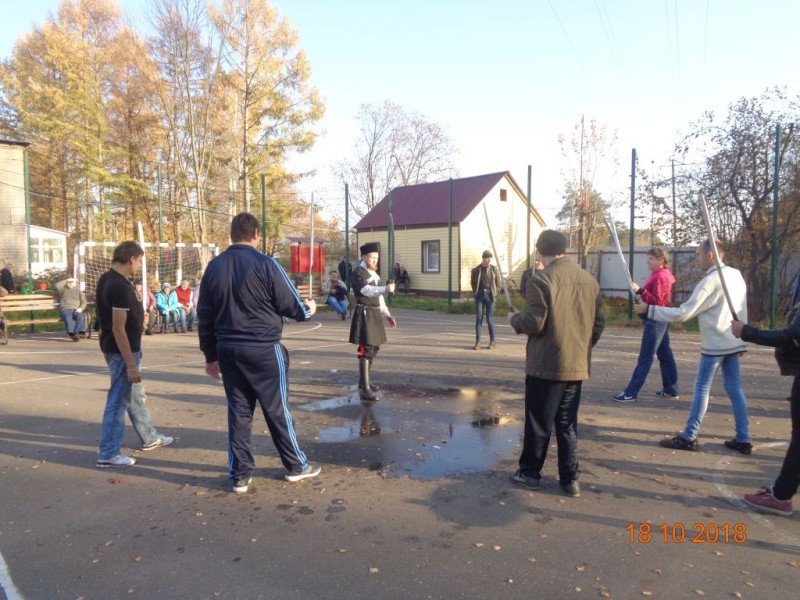 А.Крюков является членом хуторского казачьего общества г.Радужный. Он познакомил ребят с казачьими традициями и провёл мастер-класс по владению казачьей шашкой. Даже девочки с удовольствием поучаствовали и не хуже ребят выглядели с шашками в руках.