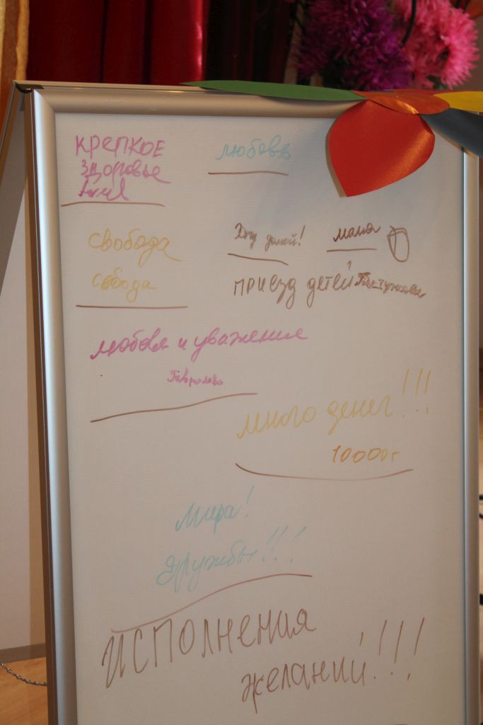Получатели социальных услуг писали свои заветные желания на доске и мечтали. Кто-то о приезде мамы, детей, о больших деньгах, а кто-то о мире на Земле.