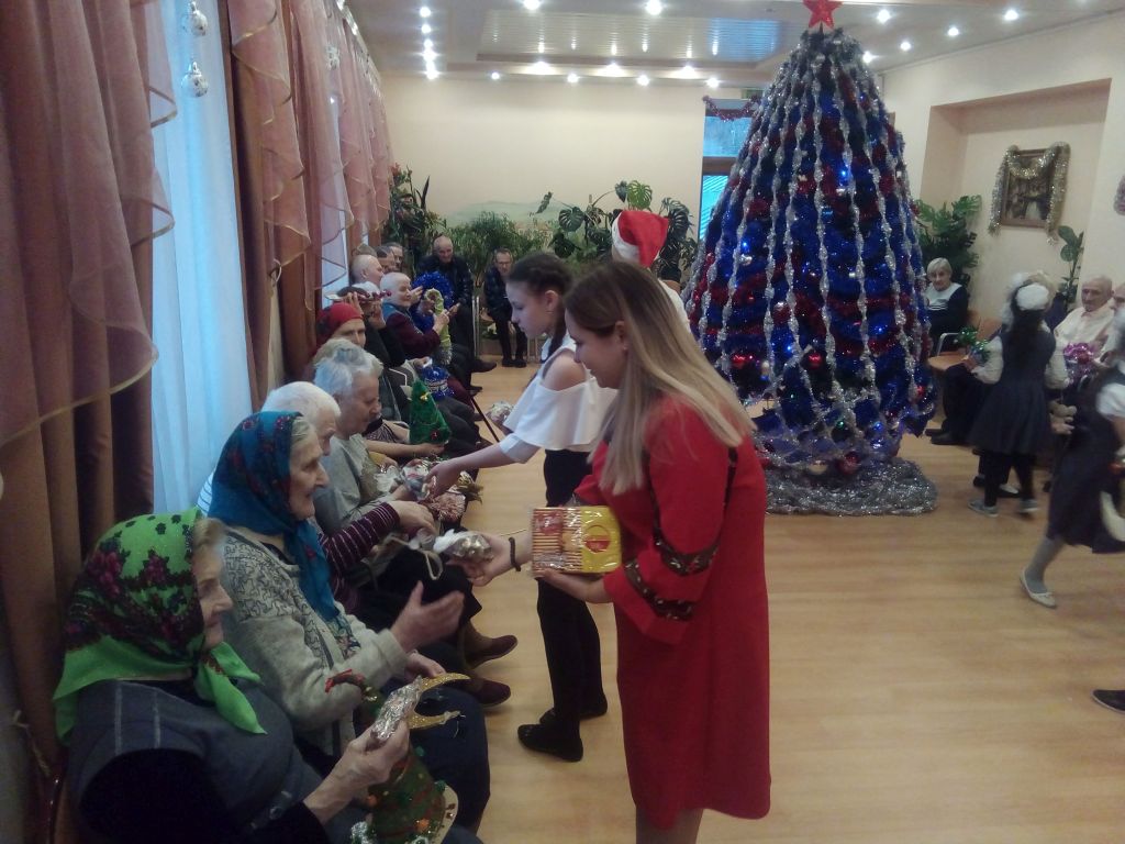 23 декабря в Лакинском отделении Собинского ПНИ прошла новогодняя встреча с учениками первой школы города Собинки. Ученики вместе с руководителем поздравили, наших проживающих, стихами песнями, вручили подарки сделанные руками детей, и маленькие сладкие гостинцы. Ну и конечно не обошлось без хоровода вокруг нашей красавицы елки. Так же дети прошлись по отделению милосердия поздравили маломобильных проживающих. Встреча прошла в дружелюбной и радостной атмосфере.