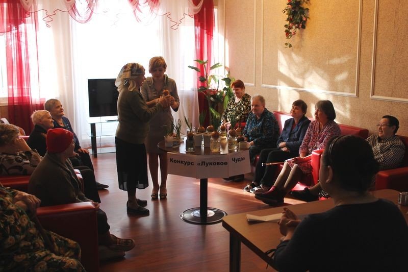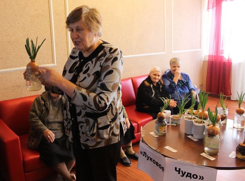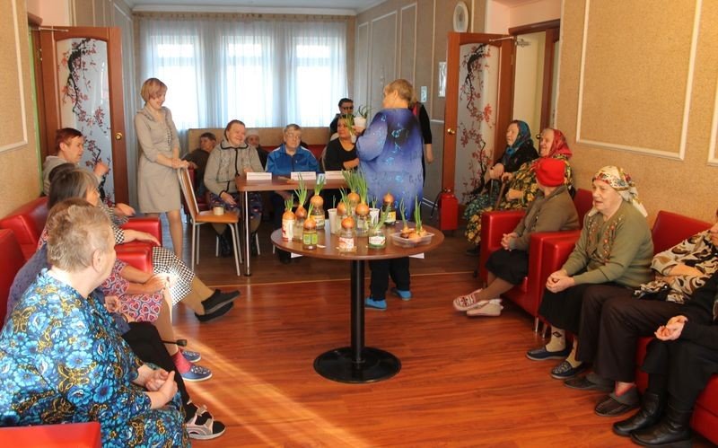 Для людей с ограниченными способностями, пожилых (самой старшей участнице 87 лет), маломобильных - это, казалось бы на первый взгляд простое занятие, тоже труд. Соревновательный интерес тоже присутствует! У кого же луковые перья выше и зелени больше?!