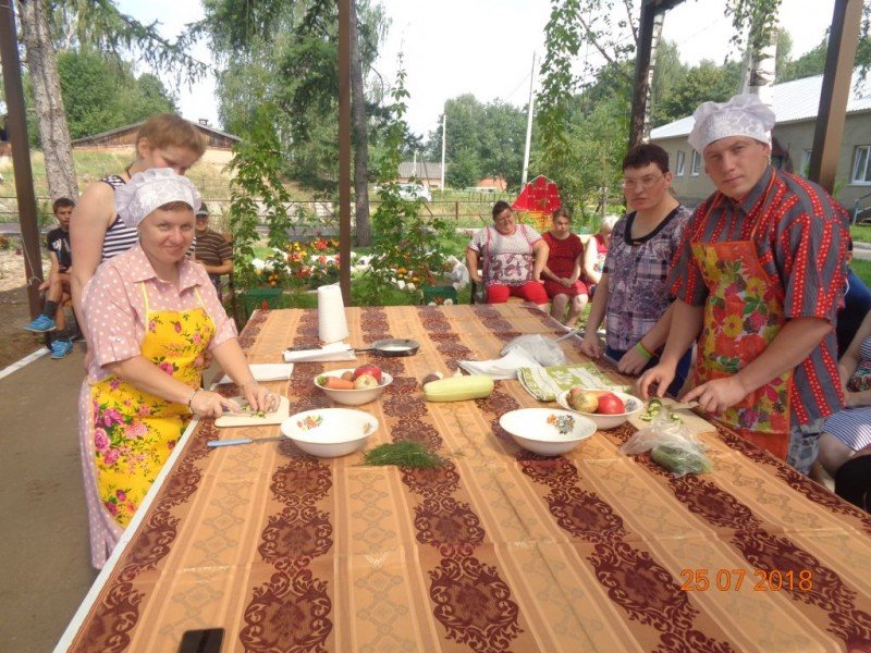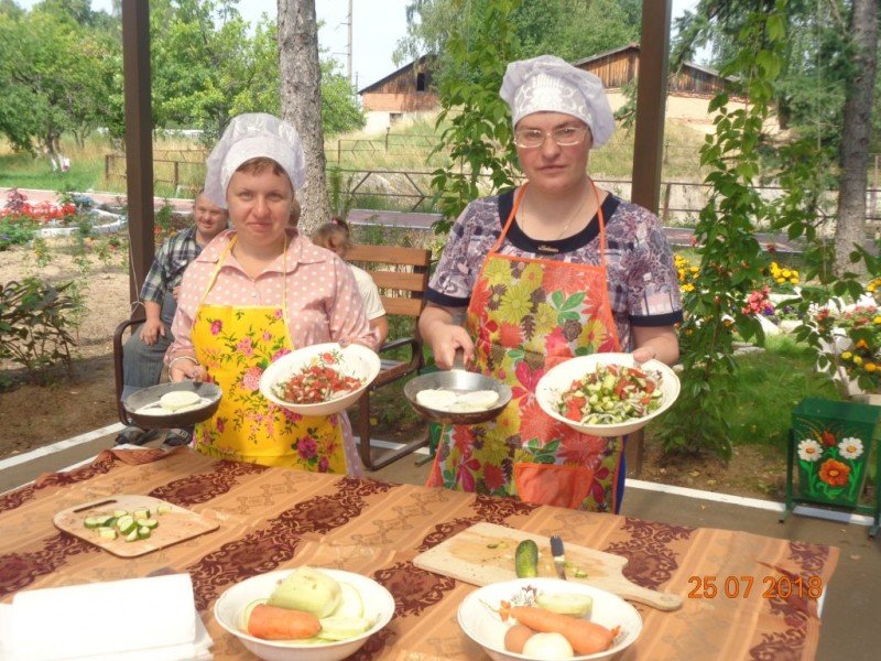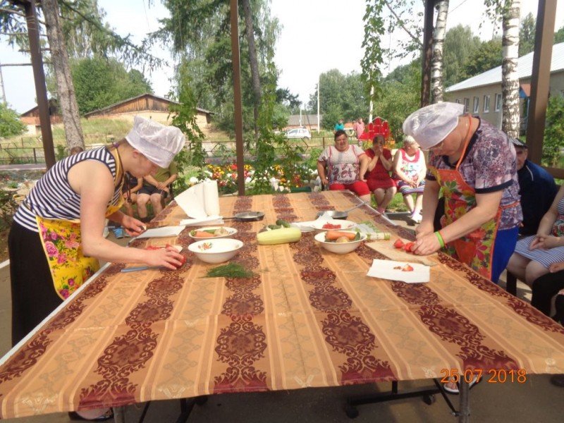 А у нас весело, познавательно и красочно прошел конкурс «Веселые поварята». Две команды проживающих показывали свои навыки в приготовлении и оформлении самых распространенных летних блюд – овощных салатов и блюд из всеми любимых кабачков.
