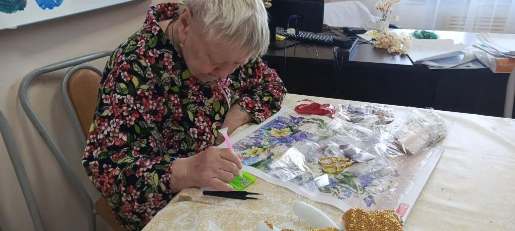 Проживающая в Лакинском отделении Собинского дома социального обслуживания Наталья Владимировна В. занимается выкладкой алмазной мозаики, которая полюбилась ей тем, что сочетает в себе красоту и легкость выполнения. Блестящие стразы своим сверканием, напоминают драгоценные камни. Наталья Владимировна, увлеченно занимаясь алмазной мозаикой, тренирует мелкую моторику рук, память, внимательность, усидчивость. Кроме этого улучшается ее эмоциональное состояние и общее самочувствие. В ее руках рождаются иконы, необыкновенные пейзажи, занимательные животные и живописные натюрморты. Стены жилой комнаты украшены ее работами. Не так давно, прошла выставка работ Натальи Владимировны в ГАУСО ВО «Ветеран» города Киржач. Восторг и удивление. Масштабные, креативные картины привлекают разнообразием оттенков и сюжетов. Наталья Владимировна говорит о том, что мозаичное рукоделие помогает ей по-иному взглянуть на себя, на окружающий мир, адаптироваться к изменяющимся условиям и обучиться чему-то новому.