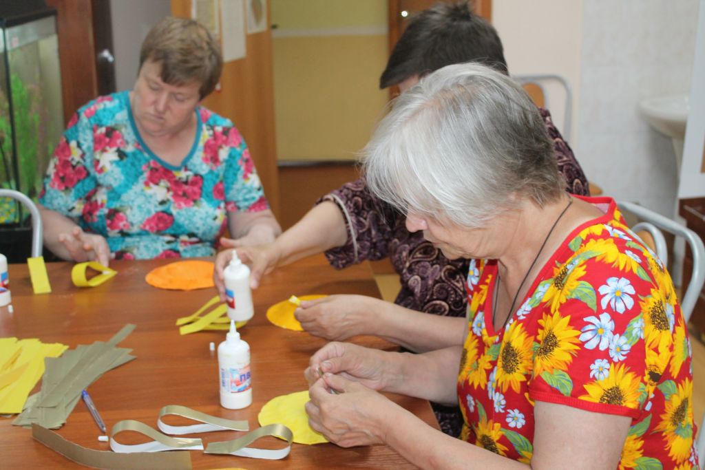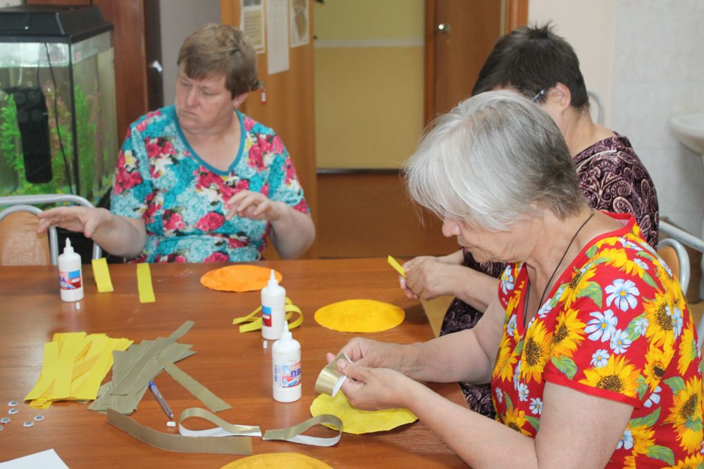 Если солнца нет на небе, значит надо самим «сделать солнце» - под таким лозунгом прошло сегодня занятие по трудотерапии с получателями социальных услуг Лакинского отделения.