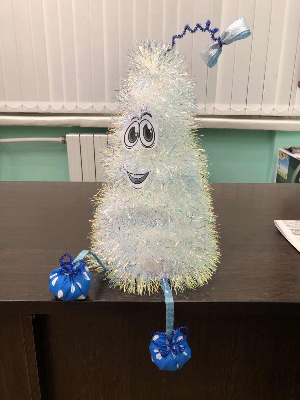 Затея приделать нашей ёлочке ножки, бантик, глазки и ротик вызвала массу положительных эмоций и желание творить. Благодаря креативности и фантазии, ребята воплотили в жизнь все задумки и вот она, наша ёлка-красавица, любуйтесь и удивляйтесь!