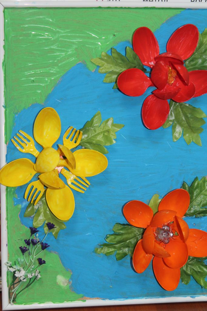 Сейчас существует масса идей и огромное пространство для полёта нашей фантазии. Например, панно из пластиковых ложек. Казалось бы, материал одноразового использования и куда его можно ещё применить, кроме как прямого назначения.