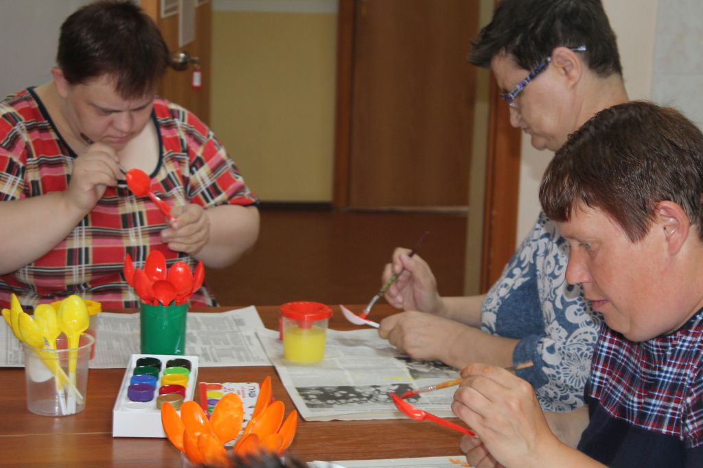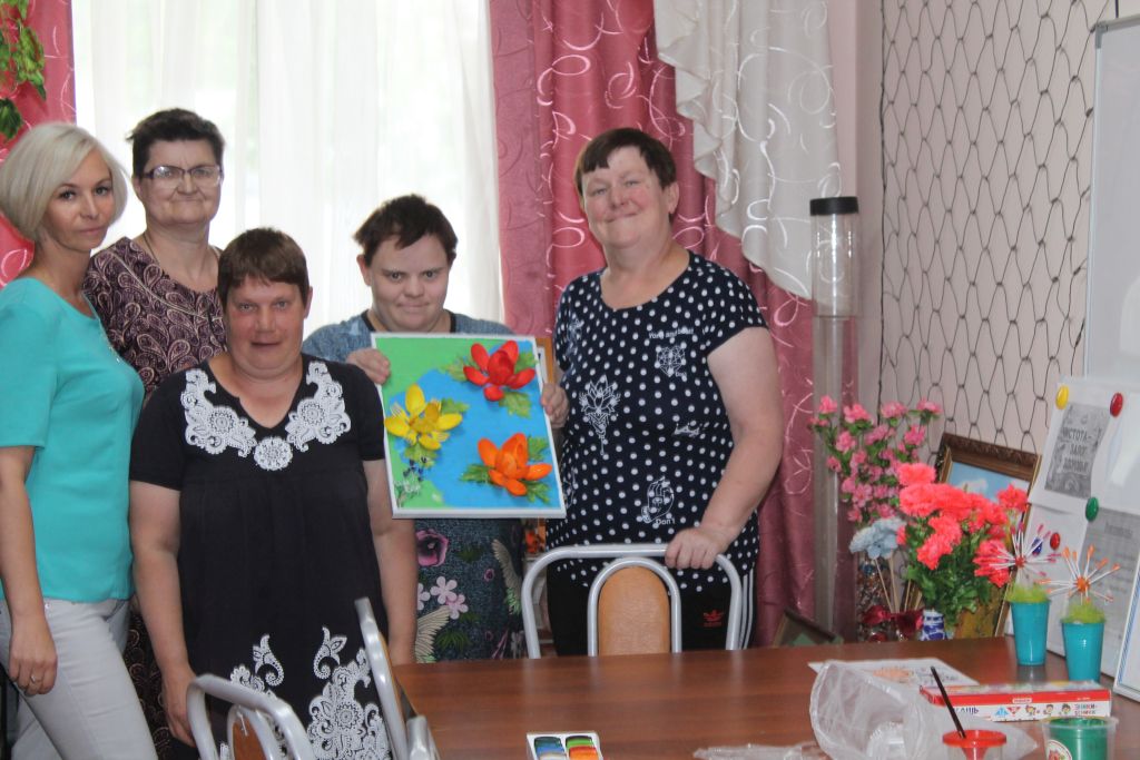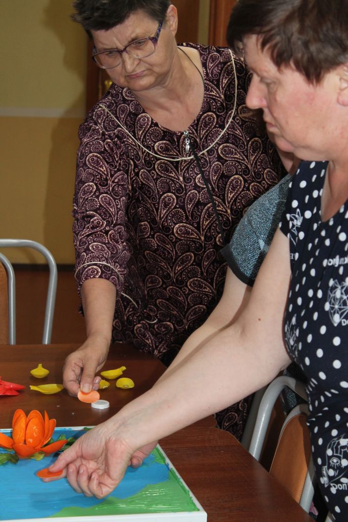 Коллективная работа очень понравилась получателям социальных услуг, ведь такие изделия просты в создании, очень красивы и могут украсить любую комнату в интернате.