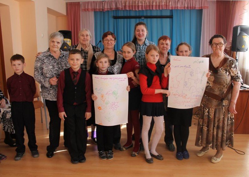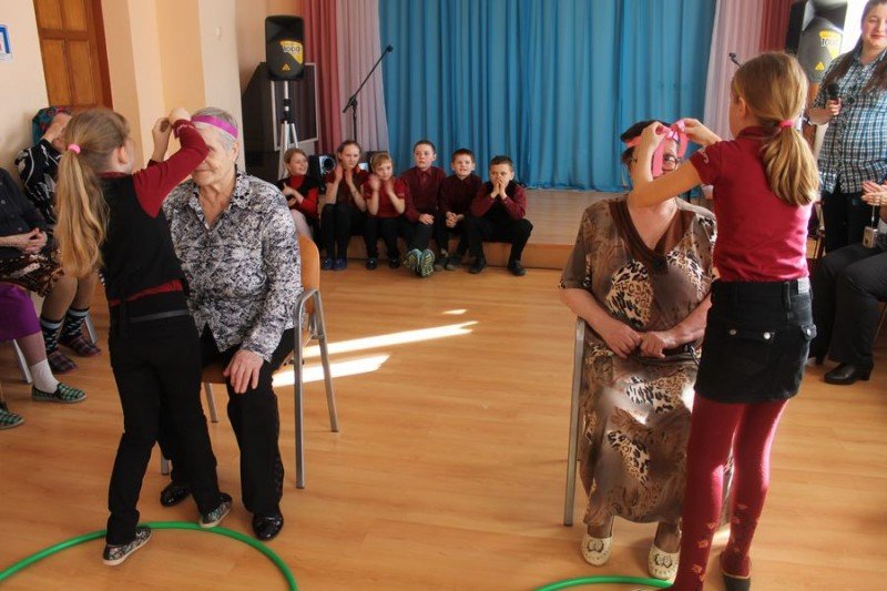 Дети с радостью ждали этого дня. Им очень хотелось поздравить своих, уже ставших настолько близкими, бабушек с чудесным праздником. Все они очень старались. Они подарили им зажигательные танцы, устроили замечательные конкурсы, где наряжали бабушек, а бабушки своих внучат, крутили вместе с ними обручи. Пели песни. В завершении программы все бабушки получили открытки от внучек и внучат и сладкие подарки.