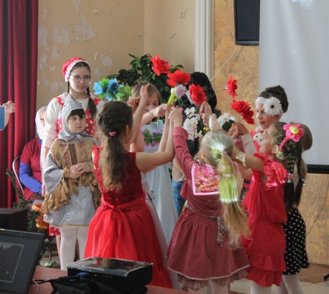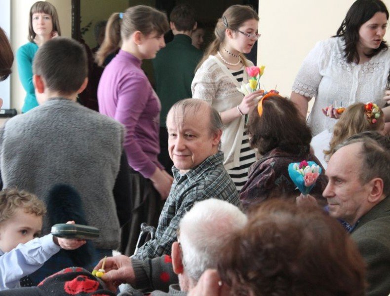 Дети рассказали очень трогательные поздравительные стихи о Воскресении Христове, исполнили пасхальные песни, сыграли мини-спектакль, затем раздали всем старикам подарки, которые сделали своими руками, а некоторым бабушкам отнесли крашеные яички в палаты.