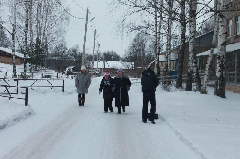 Пребывание на свежем воздухе благотворно влияют на наше эмоциональное состояние, на тонус нервной системы, повышает аппетит, и необходимо данную процедуру, особенно зимой, превратить в хорошую привычку. Проживающие Собинского дома интерната для престарелых и инвалидов учатся восхищаться морозной, заснеженной природой. А потом, в любое время года, для прогулок, будут искать любую возможность чтобы зимняя прогулка не принесла им вреда. Для этого предпримем некоторые меры - хорошее настроение - от него зависит наше здоровье, тёплая и удобная одежда - идём гулять, а не искать простуду, и желание помечтать - ведь перед нашим взором расстилаются такие красоты!
