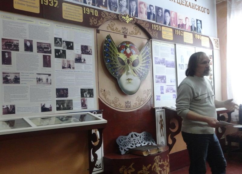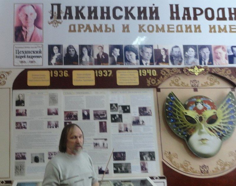 Художественный руководитель театра В.Д. Волков рассказал об истории образовании театра, который был основан в 1936 году. Сейчас ему 77 лет. За эти годы театр зарекомендовал себя творческим и активным коллективом. В его репертуаре более 200 спектаклей. В настоящее время в трупе 32 актера, из них 20 ведущих и талантливая молодежь.
