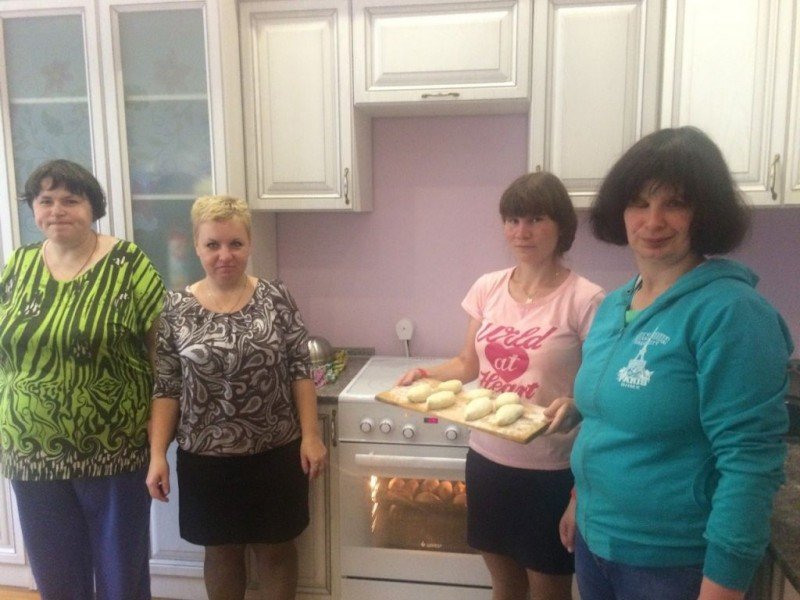 Есть пословица в народе: «Хлеб – на стол, и стол расцвёл». И решили мы поучить ребят печь пироги: ароматные, вкусные! Накануне этого дня, воспитатель Абрамова Г.Х. замесила тесто, потом все вместе лепили пирожки, готовили начинку: капусту с яйцами и луком. Правда, не у всех получились идеальные по форме пирожки, но зато всё было сделано своими руками. И как результат: готовые пирожки из духовки!