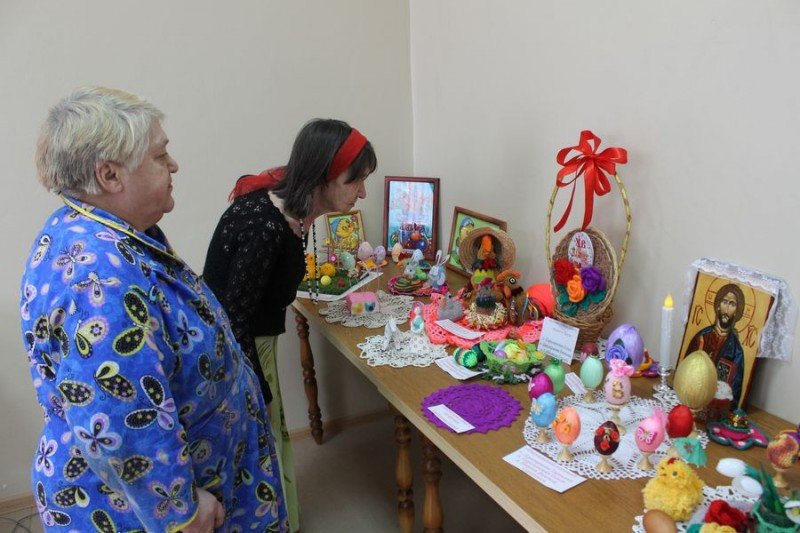 Накануне светлого праздника Пасхи в доме–интернате открылась выставка поделок, посвященная этому празднику. В выставке приняли участие самые активные клиенты нашего дома.