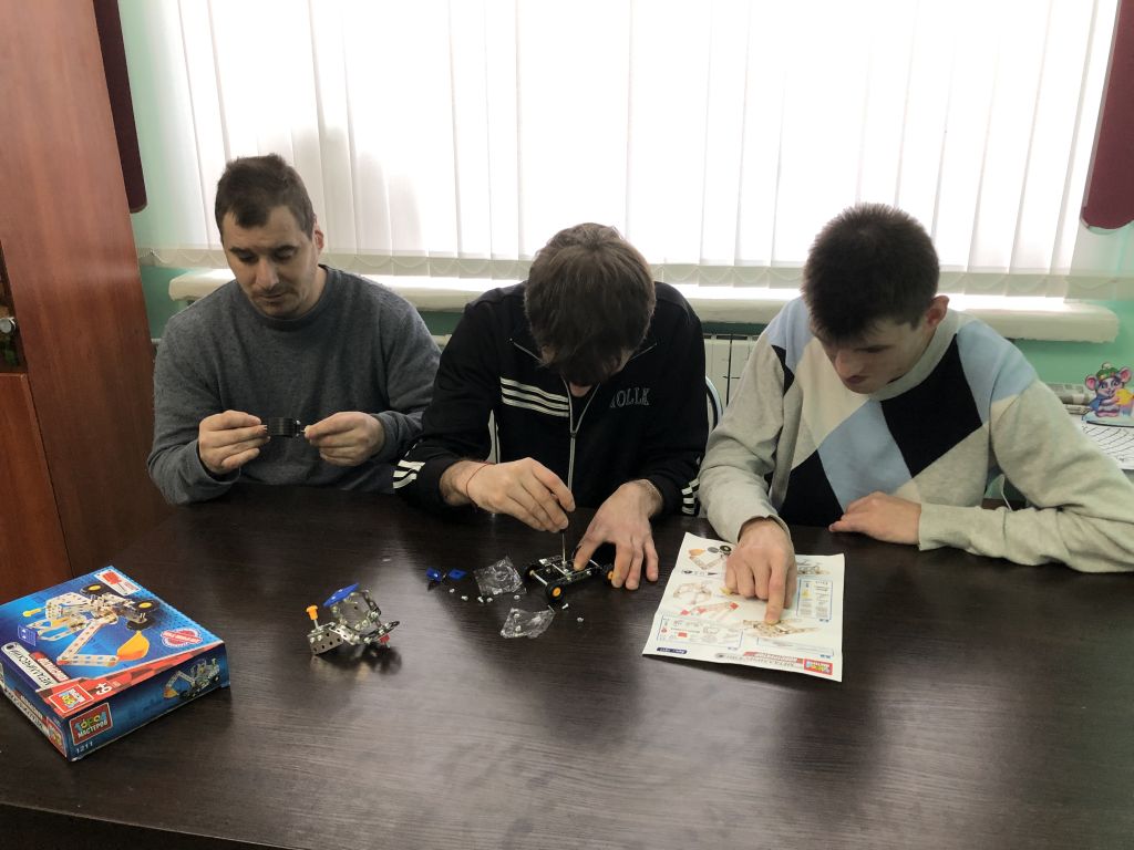 Занятия по сборке пластмассового и металлического конструктора очень увлекла наших ребят. Они внимательно разглядывали инструкцию, совещались между собой и совместными усилиями собрали конструкции.